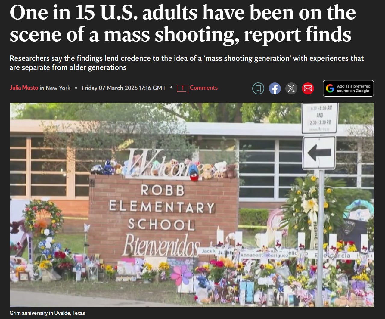 Pyrooz, D. C., Densley, J. A., & Peterson, J. K. (2025). Direct exposure to mass shootings among US adults. JAMA Network Open, 8(3), e250283. https://doi.org/10.1001/jamanetworkopen.2025.0283